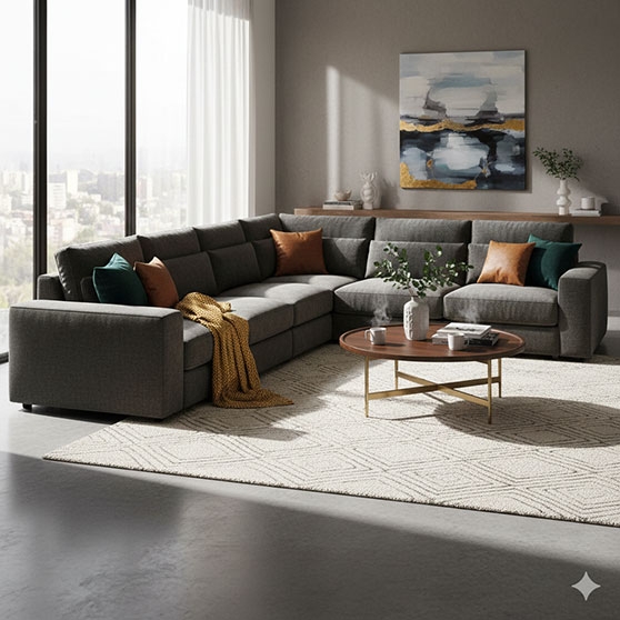 مبلمان ال برای خانههای کوچک و فضاهای باز مناسب است و امکان استفاده حداکثری از فضا را فراهم میکند..